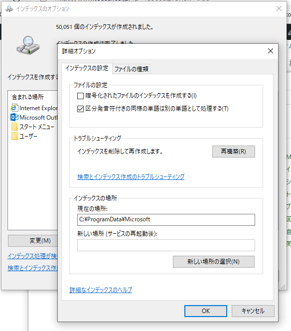 結論としては、このインデックスの保存場所が原因でWindowsUpdateが失敗し続けていた訳ですが、なかなかこの原因に辿り着くのは難しいです。