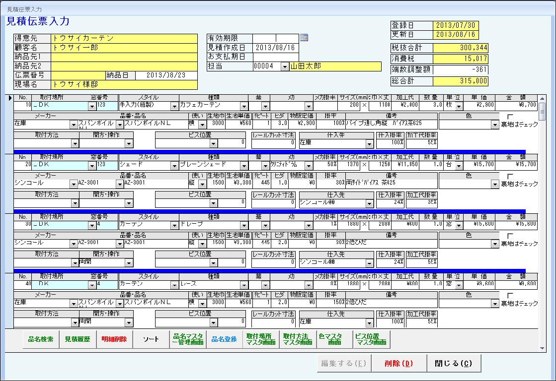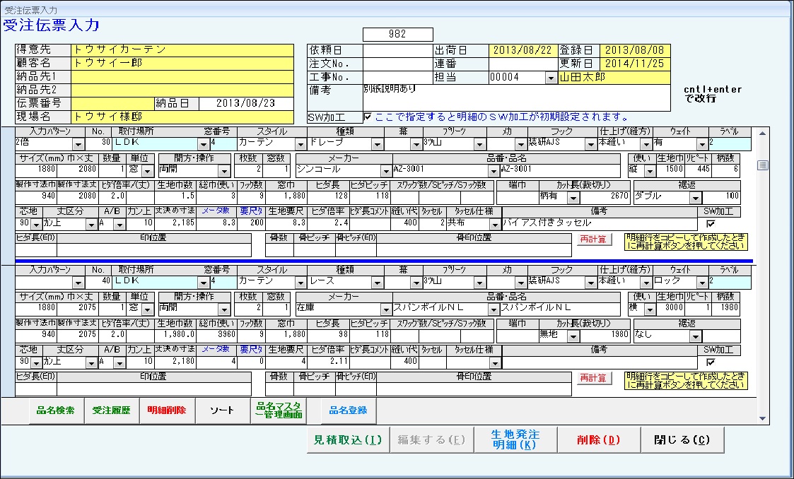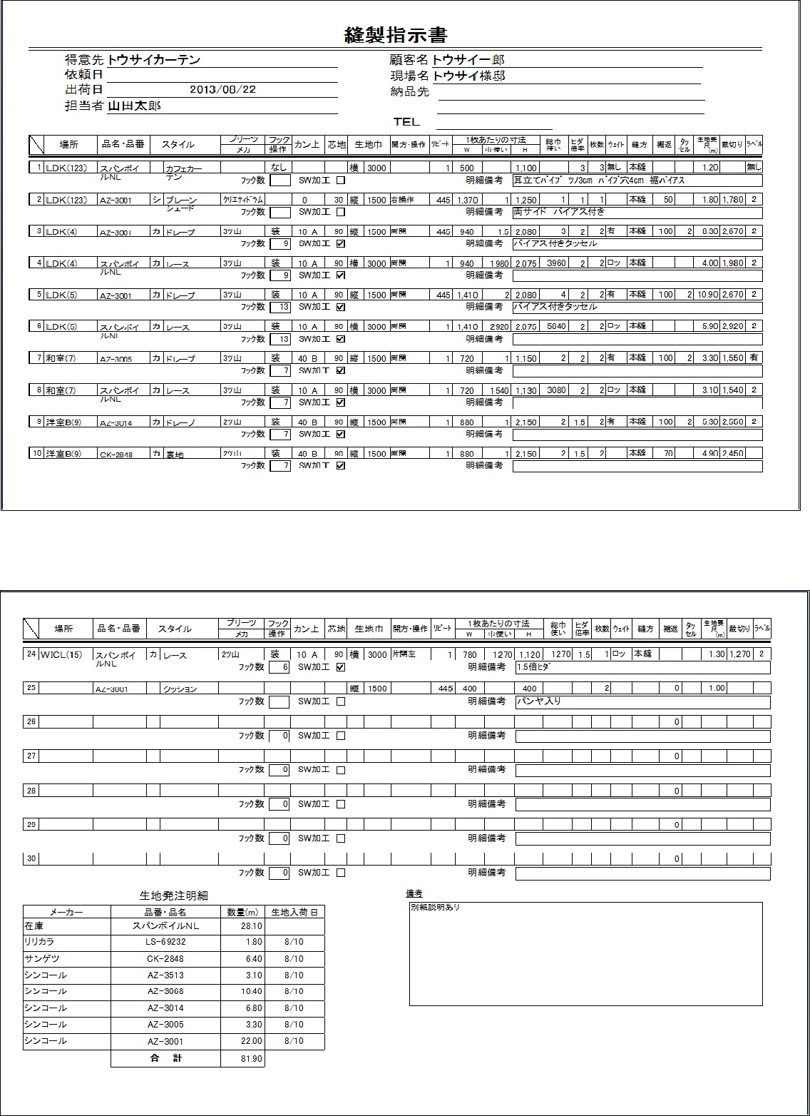 縫製指示書・指図書・お仕立て明細・タッセル明細の作成・生地発注処理などがスムーズになります。