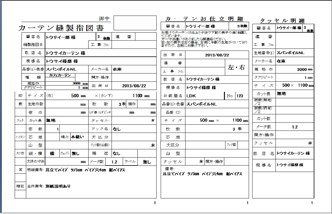 カーテン、シェードの縫製指示、指図書を御社の裁断仕様に合わせて発行できます。