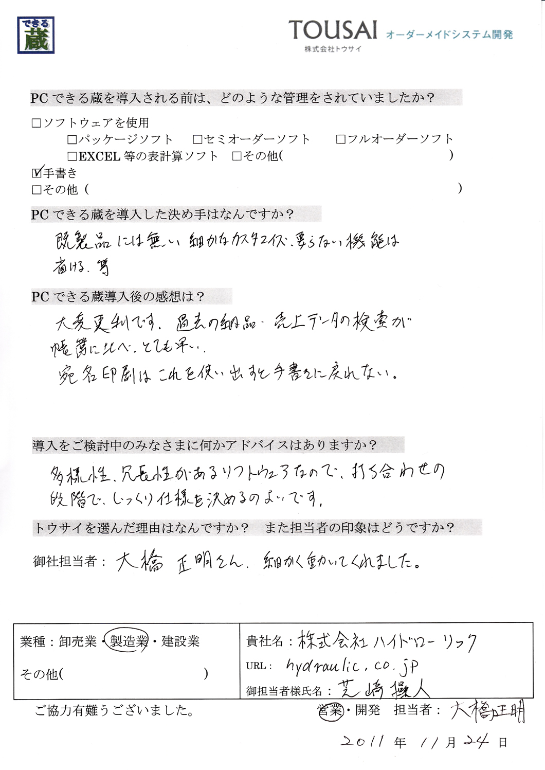 大変便利です。過去の納品・売上データの検索が帳簿に比べ、とても早い。