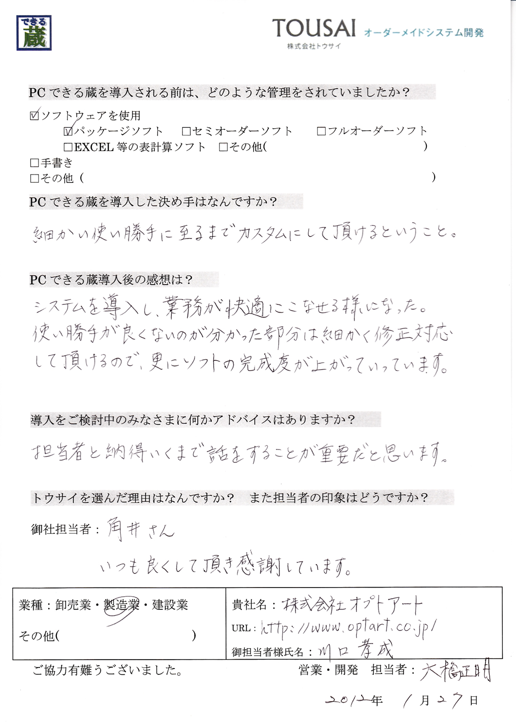 会社名 株式会社 オプトアート 様  http://www.optart.co.jp/