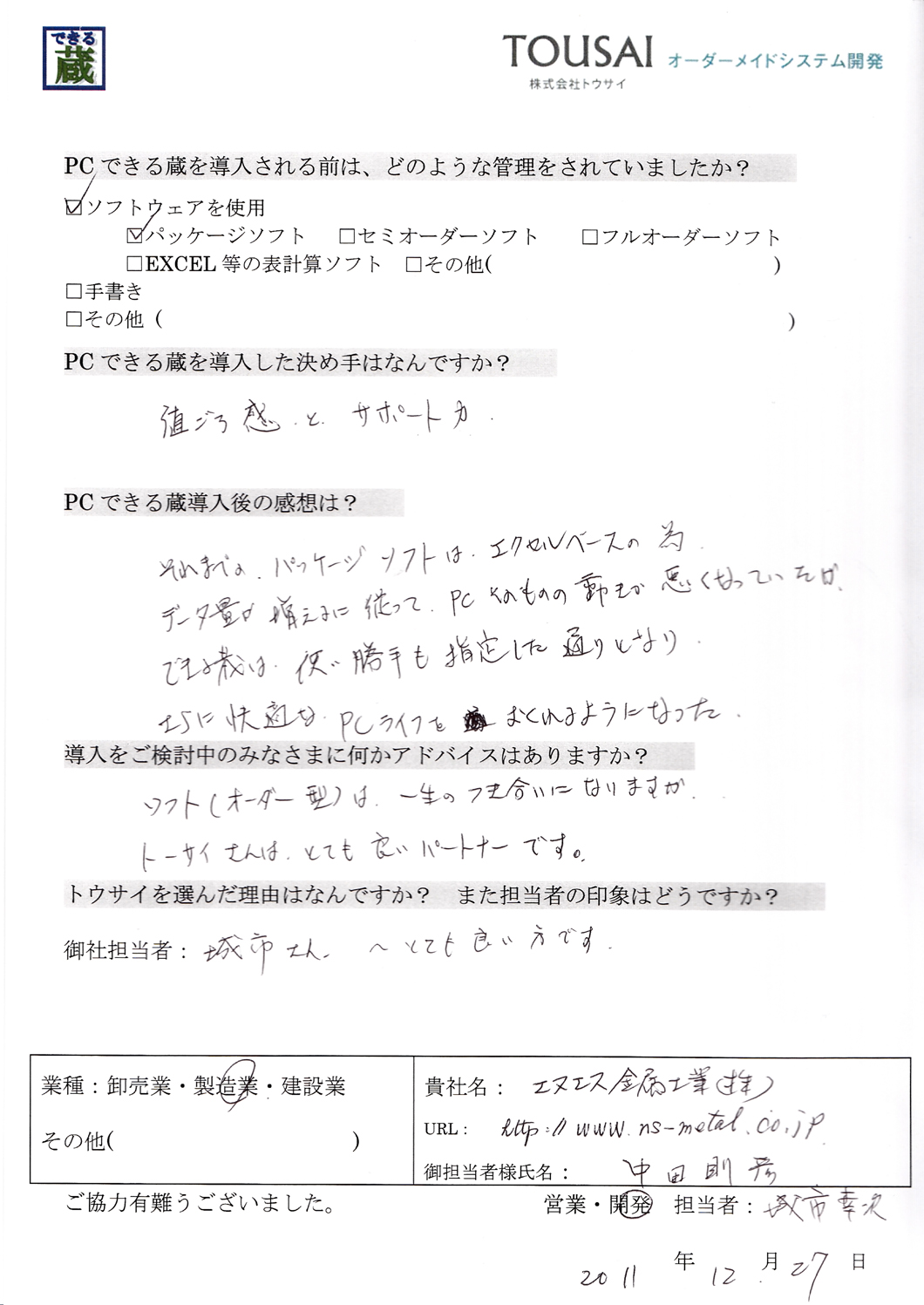 ソフト(オーダー型)は、一生のつき合いになりますが、トウサイさんは、とても良いパートナーです。