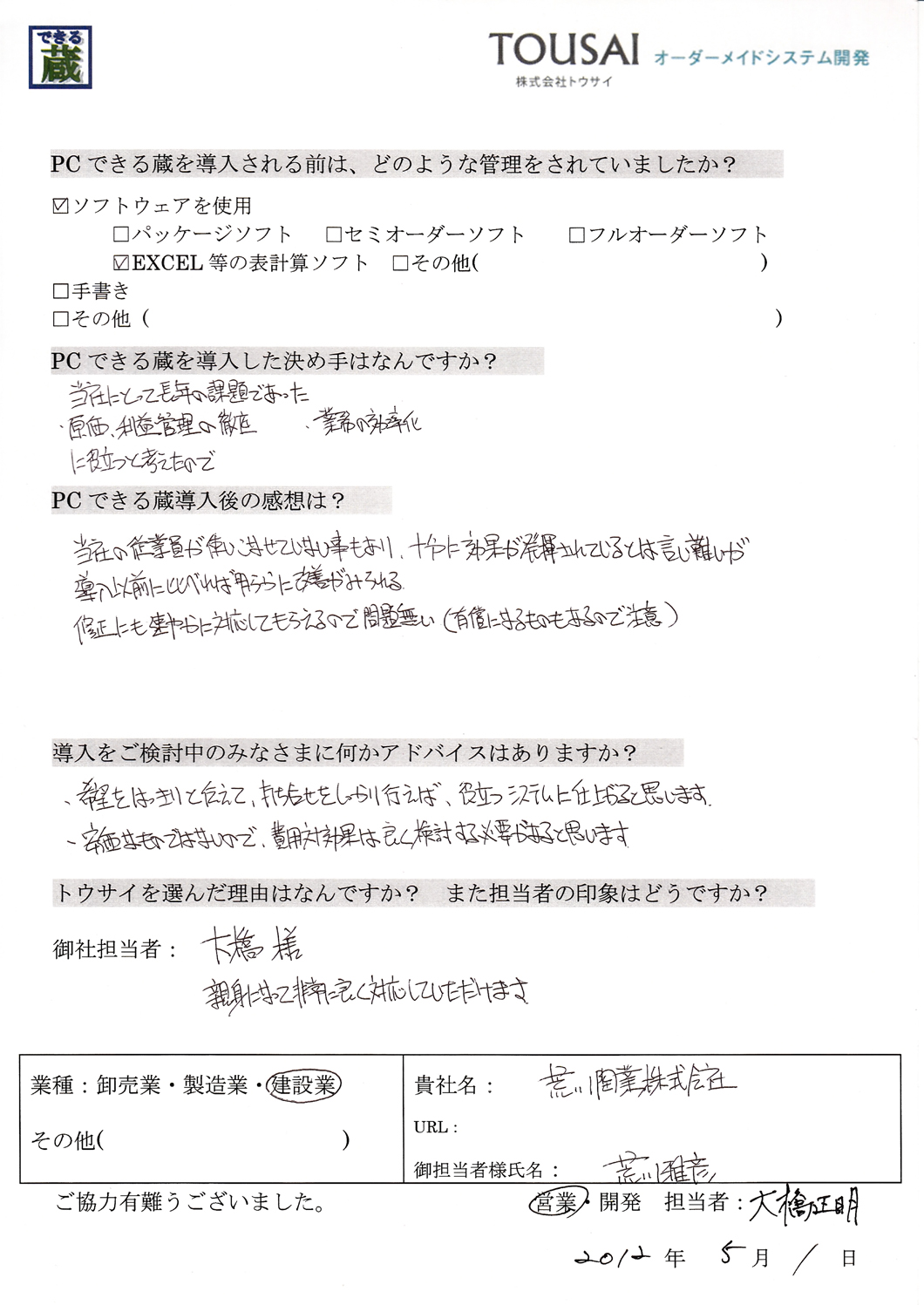 ■ トウサイを選んだ理由は何ですか?また担当者の印象はどうですか?