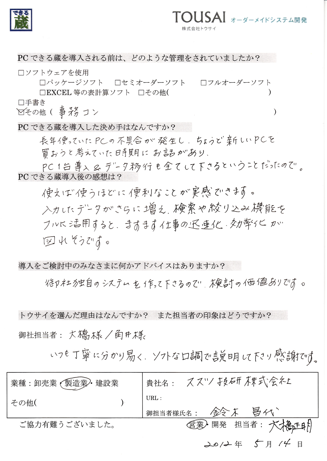 ■ トウサイを選んだ理由は何ですか?また担当者の印象はどうですか?