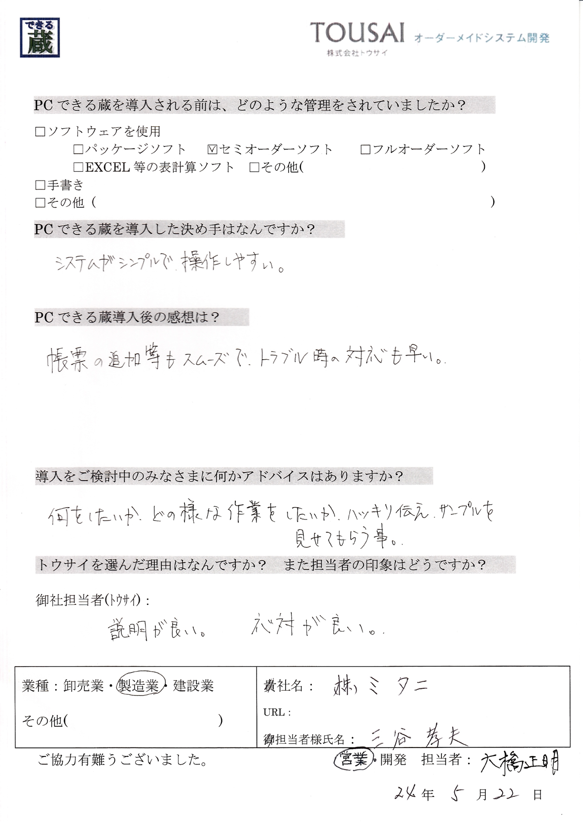 帳票の追加等もスムーズで、トラブル時の対応も早い。