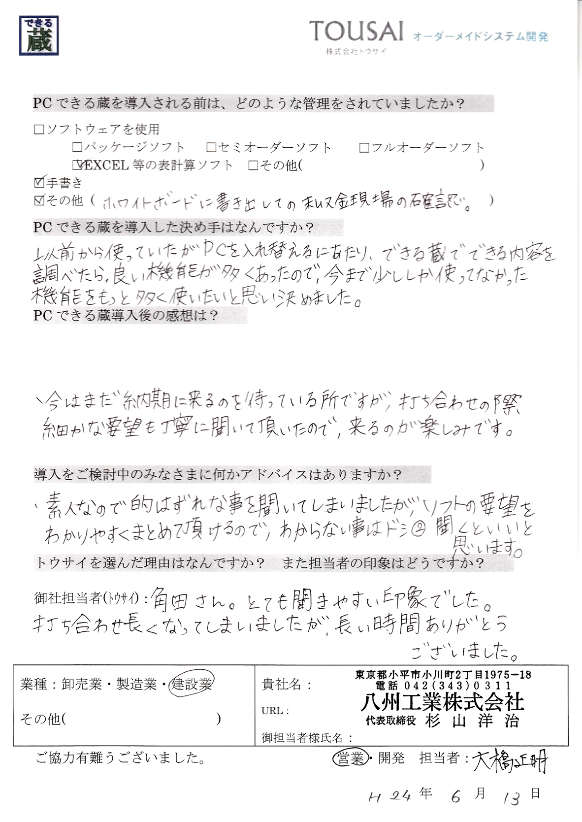 会社名 八州工業株式会社 様  http://www.yashima-kougyou.com/