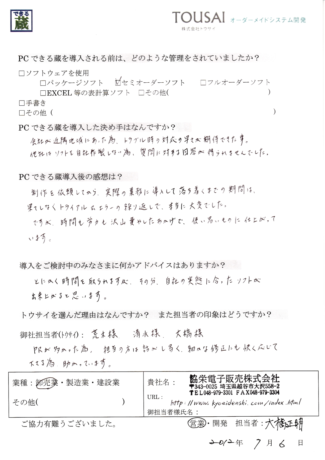 担当者様が元ソフト業界に在籍されていたこともあり、テスト等も多大な御協力をいただきました。