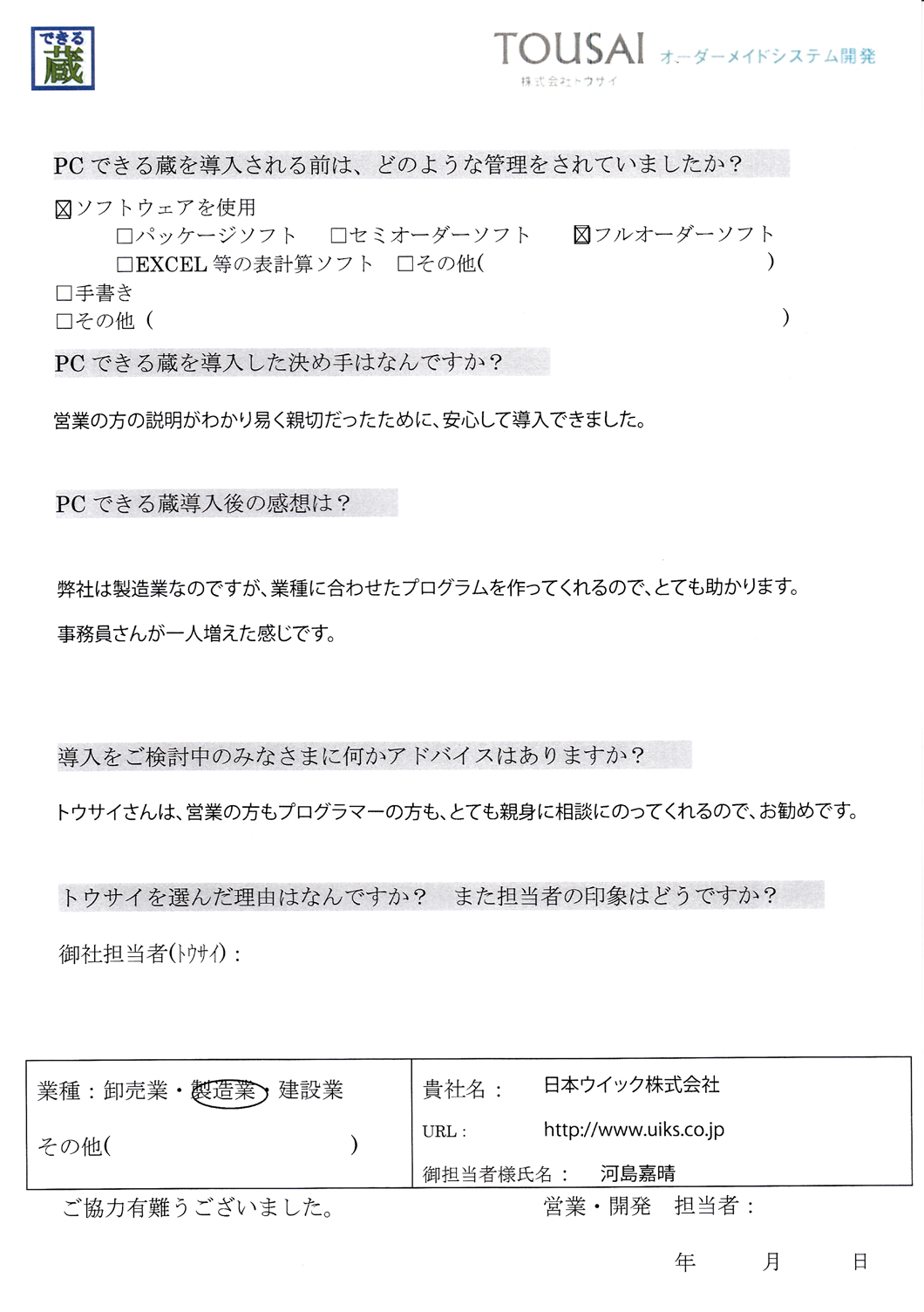 トウサイさんは、営業の方もプログラマーの方も、とても親身に相談にのってくれるので、お勧めです。