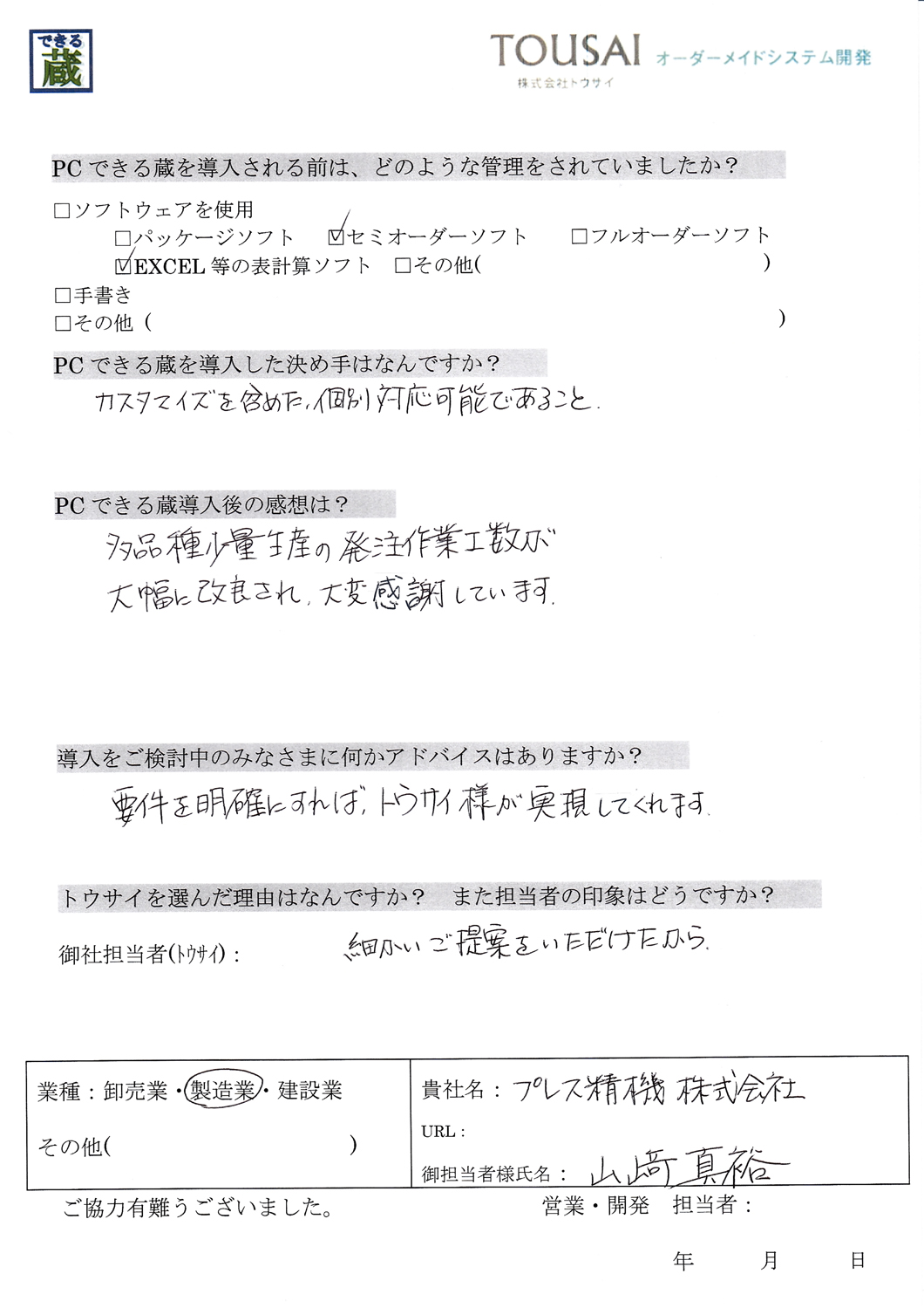 多品種少量生産の発注作業工数が大幅に改善され、大変感謝しています。