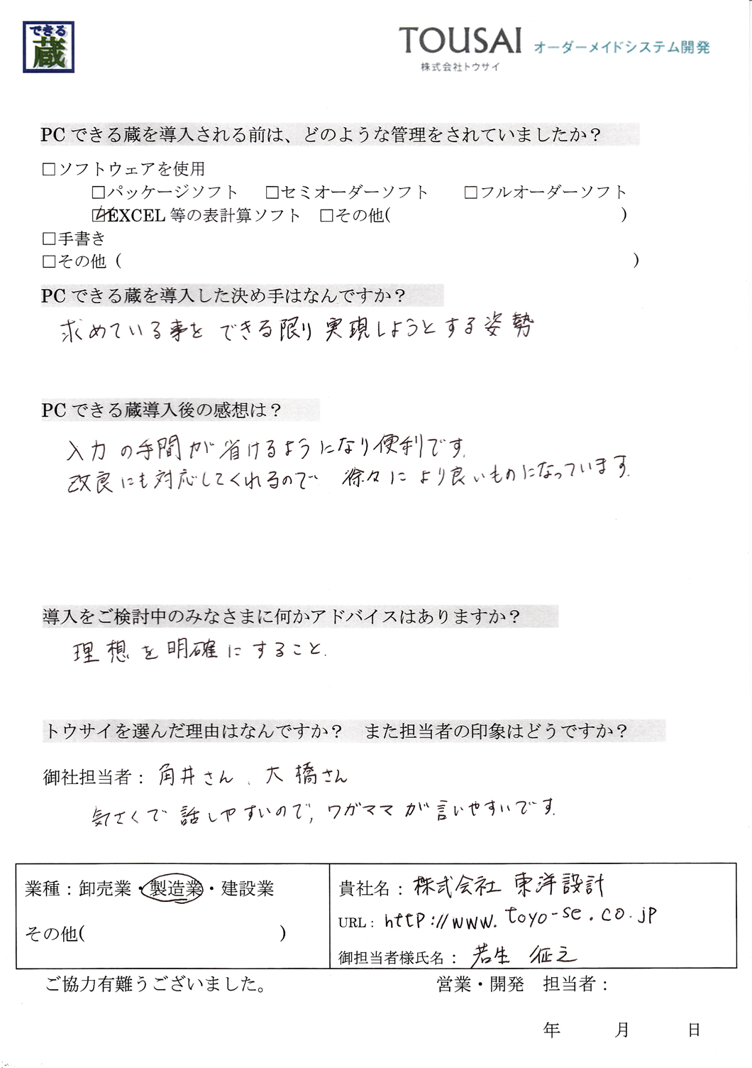■ トウサイを選んだ理由は何ですか?また担当者の印象はどうですか?