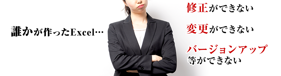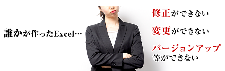 …自社内で作成したExcelマクロ/Access等で開発されたシステムを使っているが、担当者が多忙又は退職してしまい、誰も機能拡張や、メンテナンスができない状況である。