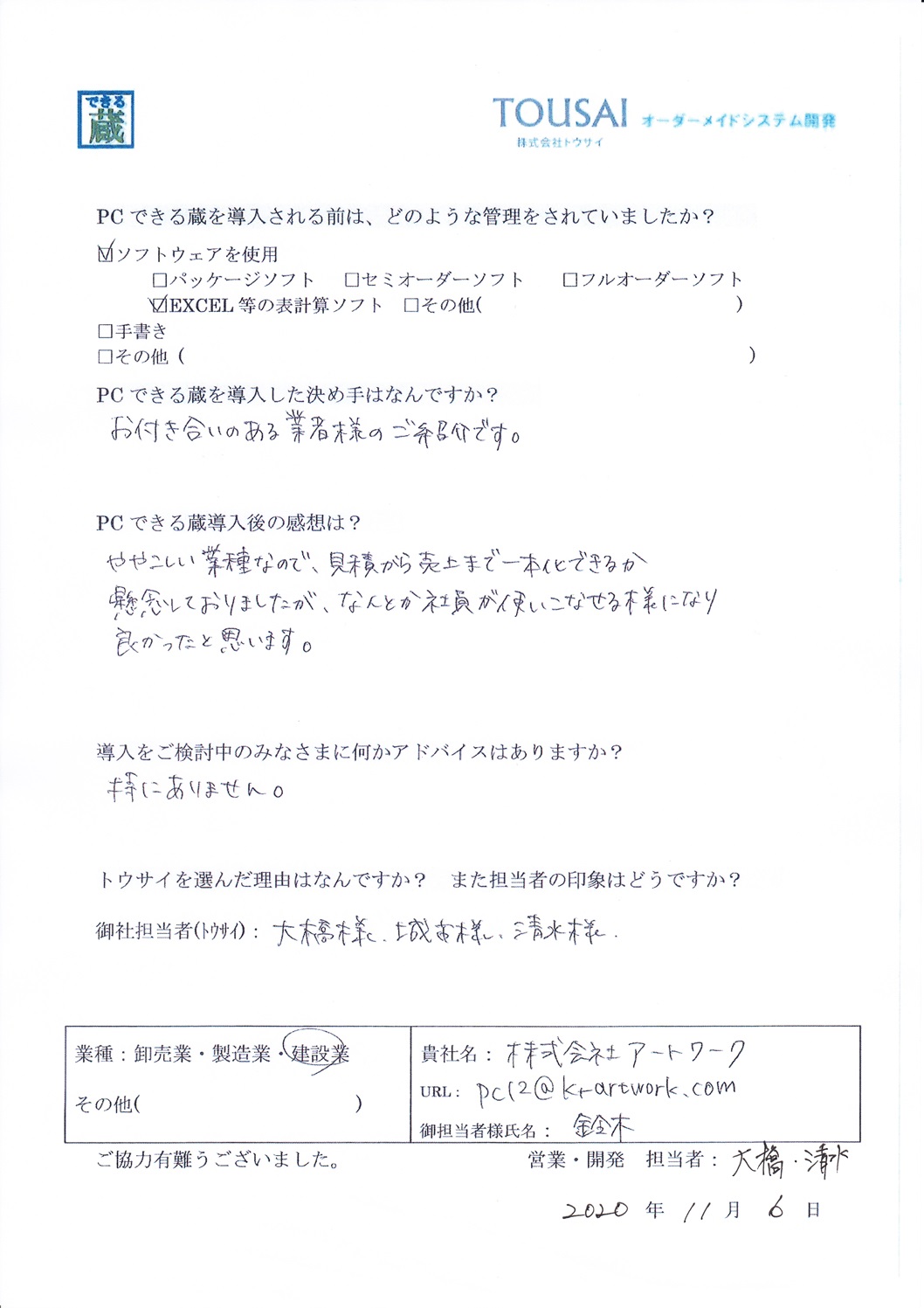 ●株式会社 アートワーク様(建設業)