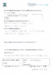 ご協力頂き有難うございました。