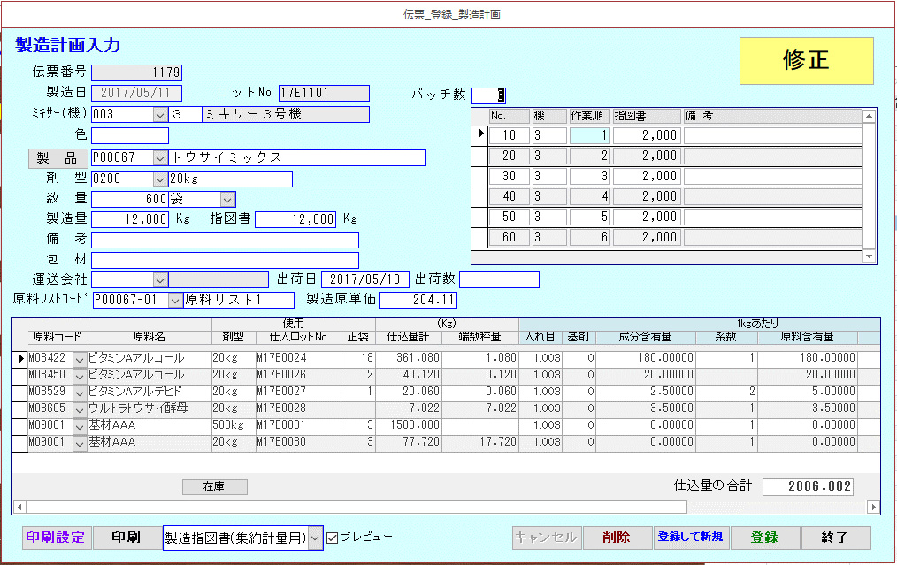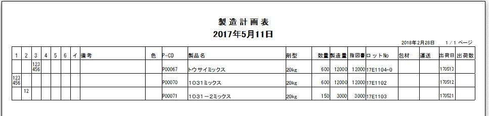 各種マスタ情報を利用して、製造指示書、製造計画表も容易に作成可能です。