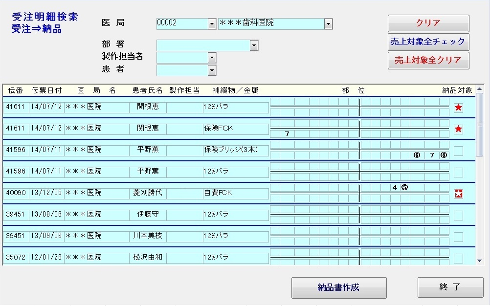 受注、売上入力画面に、患者の治療部位をクリックで選択できるようにし、納品書にも治療部位を印刷可能に。