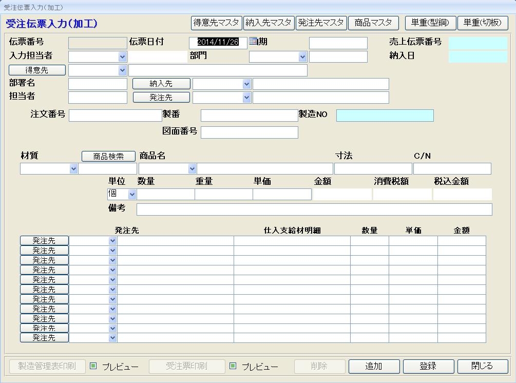 各種入力項目の中でマスタ化が可能なものを洗い出し、かつ、過去の既存データから類似データ参照可能とし、簡単に流用できるようにします。 また、受注データから、発注指示・売上データへ、発注データから仕入データへの自動連動により入力の効率化を図るなど、大幅な作業の効率化を実現します。