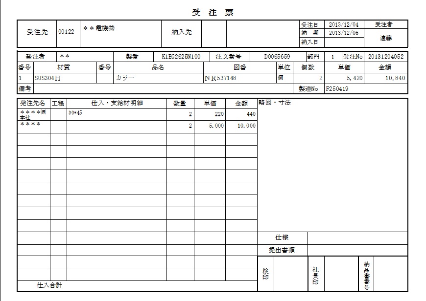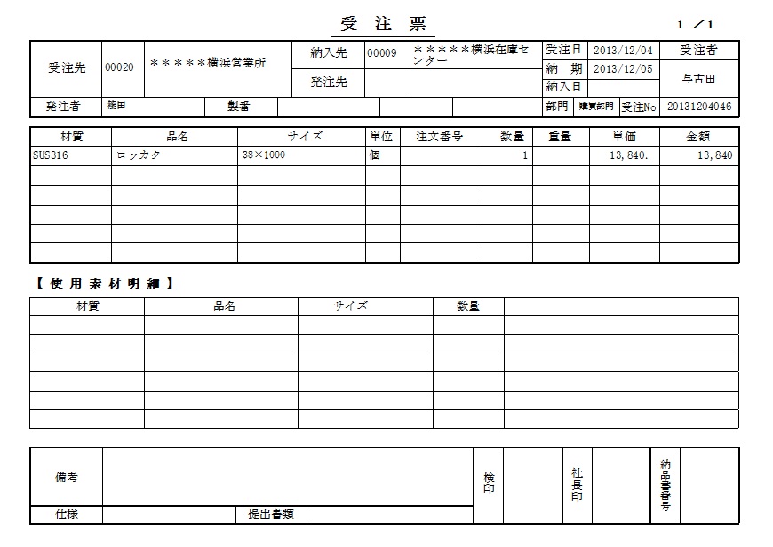 指示書に、使用した素材及び発生した端材をサイズ別に記載可能とし、工場担当者が記入することにより、本部側では戻ってきた指示書を元に、使用素材、端材を入力。リアルな在庫管理を可能にします。