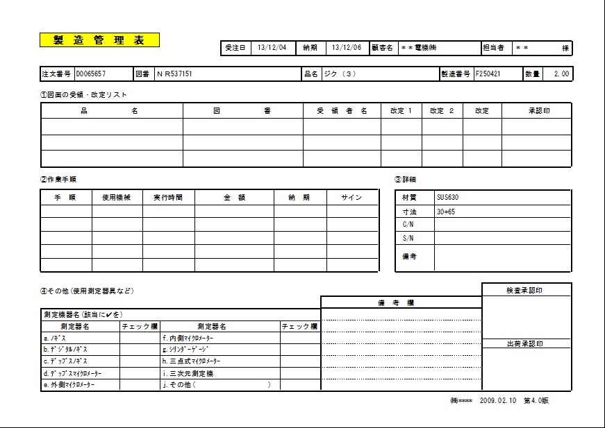 記入項目の洗い出しを行って、工場に対する指示書の書式を統一します。全社的なルールとして表現の統一化を徹底することで、記載項目漏れなどのミスを未然に防ぎます。