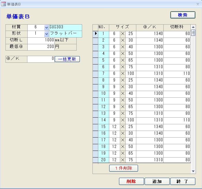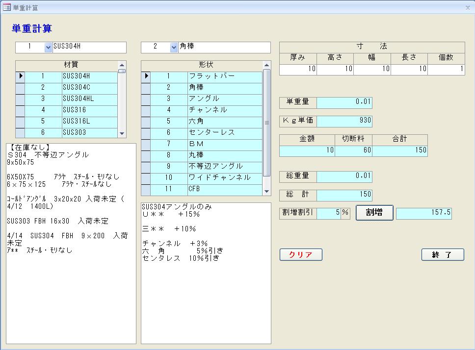 担当の方と綿密に打合せを行い、ノウハウを全てドキュメント化し全社的ルールとして、価格改定などの変化に対応できるようにします。 また期間限定やメーカ別特価などが発生する場合、メモ欄を計算画面に表示させて注意を促すなど、追加機能を持たせることも可能です。
